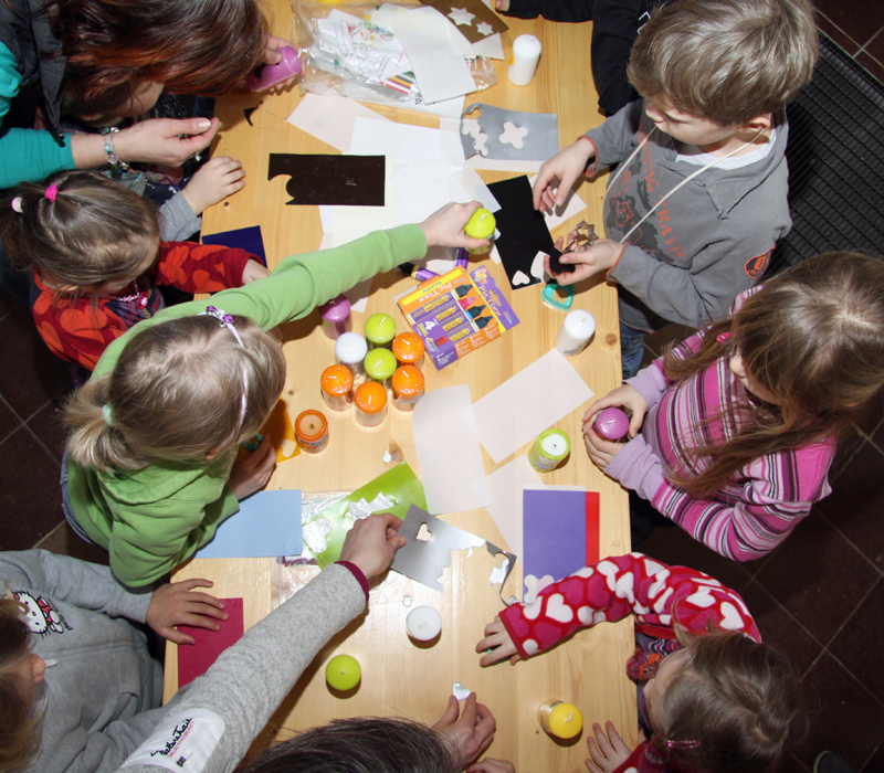 Namenskerzen basteln war beim letzten Kindergottesdienst angesagt. Zahlreiche farbenprächtige Kerzen, die die Kinder jeweils zum Beginn ihres gemeinsamen Gottesdienstes entzünden werden, sind dabei entstanden. Künftig wird der Termin des Kindergottesdienstes jeweils der erste Samstag im Monat um 10:30 Uhr sein. Wer zwischen 4 und 10 Jahren alt ist und einige Tage vorher jeweils per E-Mail an den nahenden Kindergottesdienst erinnert werden möchte, der melde sich bitte im Pfarramt.
