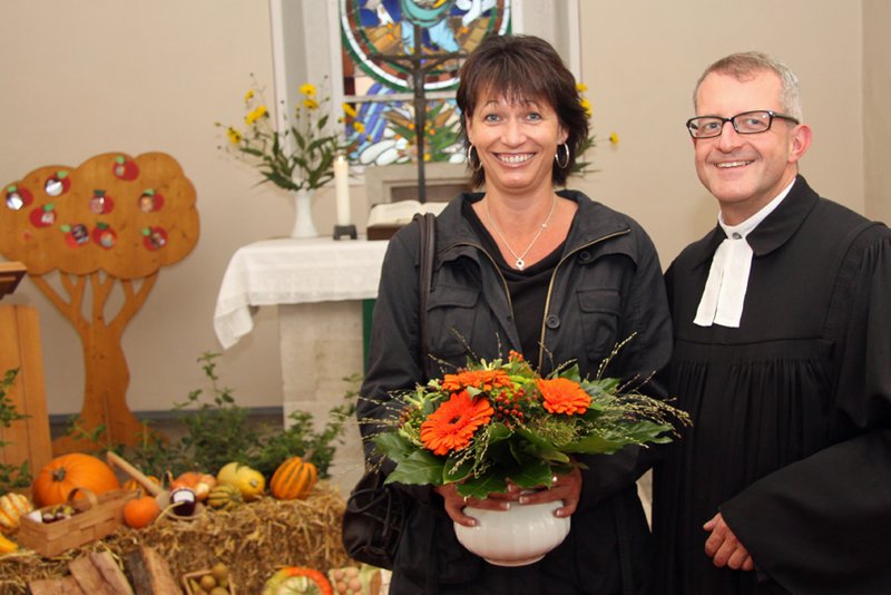Im Gottesdienst in Volzum am Erntedanktag, dem 6. Oktober 2013 wurde Stephanie Glotz den Gemeinden des Pfarrverbands Salzdahlum, Apelnstedt und Volzum als neue Sekretärin im Gemeindebüro der Kirchengemeinden vorgestellt. Seit zehn Jahren ist Stephanie Glotz als Sekretärin im Sickter Kirchengemeindebüro tätig und das wird auch unverändert so bleiben. Zusätzlich versieht sie nun an Dienstagen und Donnerstagen von 14:30 bis 18:00 Uhr ihren Dienst im Salzdahlumer Büro in der Braunschweiger Str. 14. Nahtlos begann sie zum 1.9. d.J. in der Nachfolge von Elisabeth Grabenhorst, die nach nahezu drei Jahrzehnten ausgeschieden war, ihre Tätigkeit. Mit einem Blumenstrauß und der Hoffnung auf eine dauerhafte und gute Zusammenarbeit hieß Pfarrer Dr. Axel Heike-Gmelin sie offiziell willkommen.